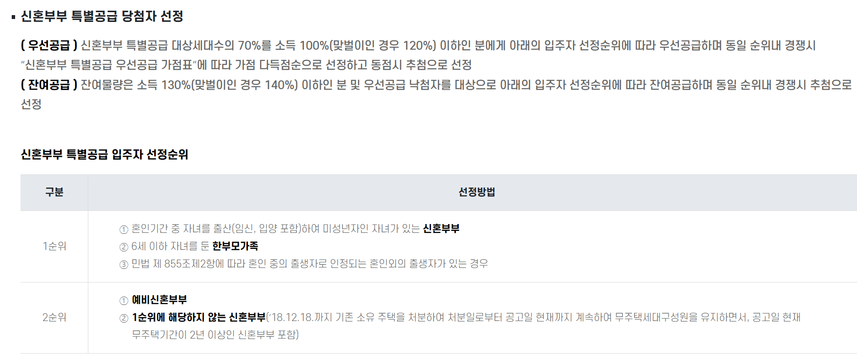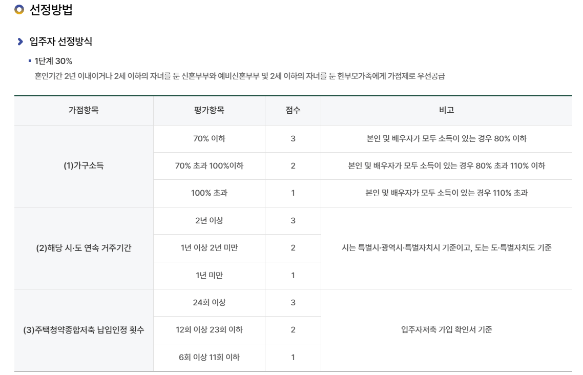 하지만 1단계에서 당첨 자격은 혼인기간이 2년 이내여야 하기 때문에