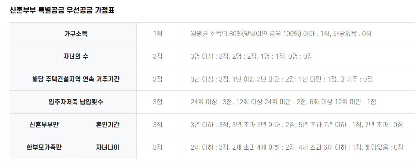 신혼부부 특별공급은 가점제 이기 때문에
